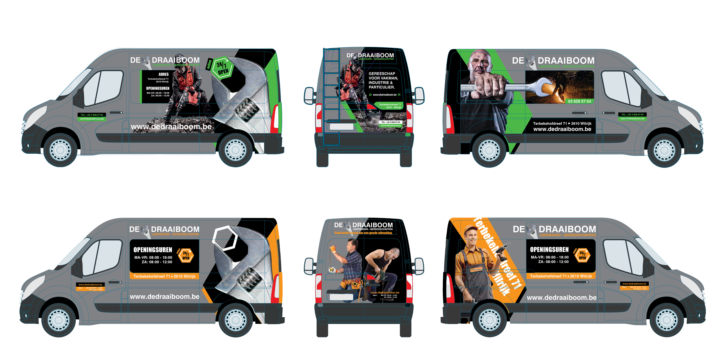 De Draaiboom is a hardware store focused on construction professionals. They wanted to wrap their delivery van so it could double as mobile advertisement for their store. The design should appeal to their target demographic and include key contact information.